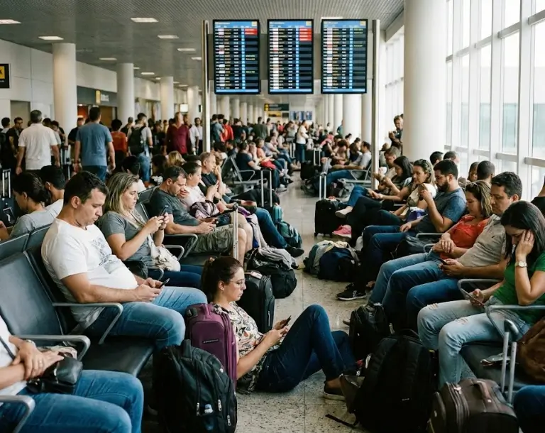 Além do cansaço físico, é comum surgir frustração, ansiedade e medo de perder compromissos importantes, especialmente quando o problema ocorre durante uma viagem internacional ou fora do país de residência.